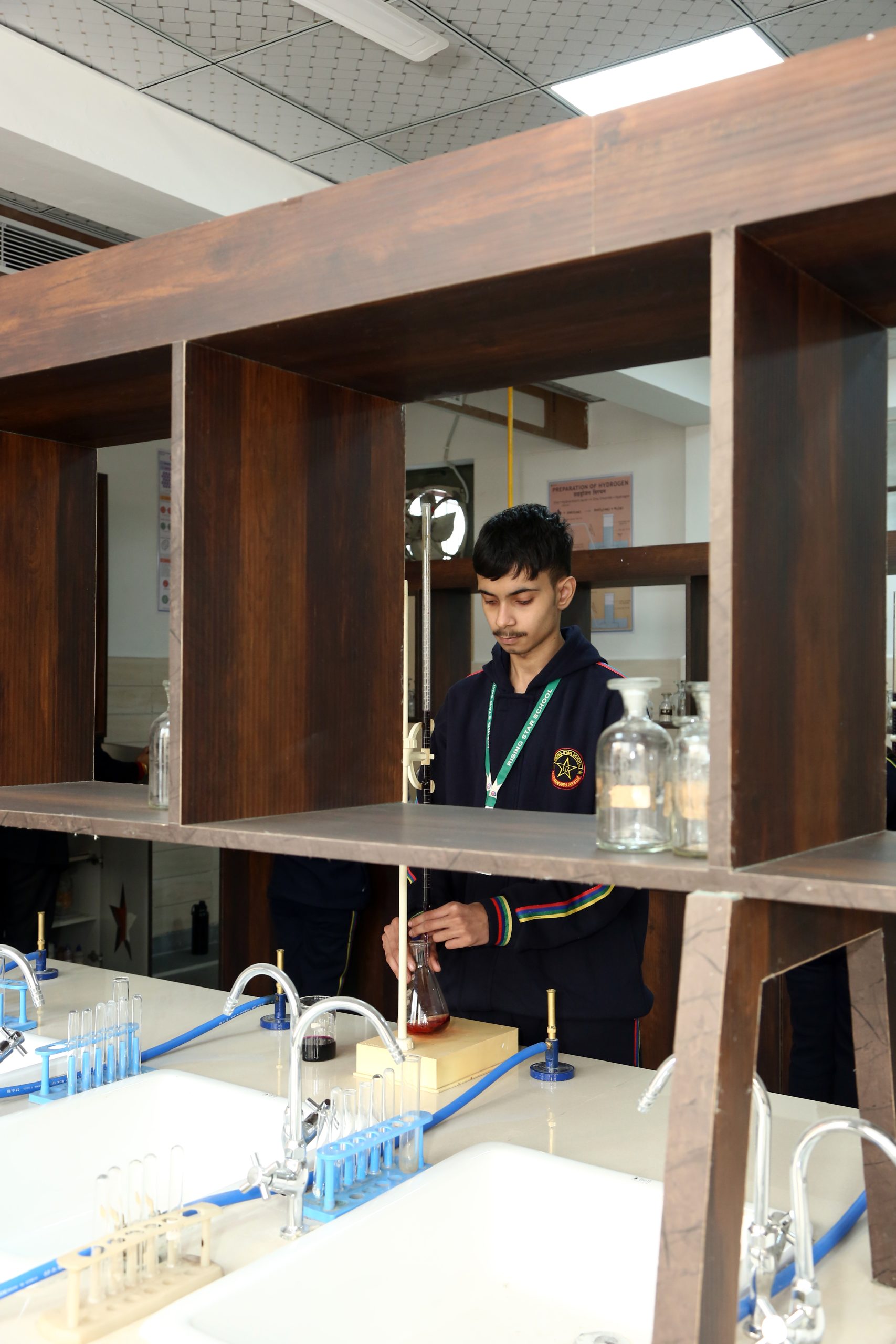 The chemistry laboratory is designed while keeping all the statutory norms and safety standards. It is well ventilated as well as spacious. It has some of the most accurate digital measuring instruments required for measuring chemicals. Here, a scientific attitude is developed in the students along with the ability to analyze, collate, compute, integrate and deduce. In the lab, the students learn to handle apparatus and chemicals. They improve their understanding of various chemical reactions and chemical processes. It enables personal verification of important experimental facts. Logic and reasoning skills that develop in this lab will go a long way in ensuring success in later life.